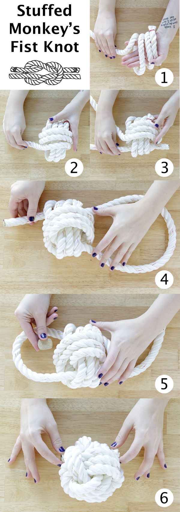 Remember those great rope ball knots we made earlier? Well here’s one that has a fun rope element! We love fetching these, tugging on these, and toting these around the house. My GSD is smaller than his and he steps on it all the time. It’s absurdly adorable 🙂